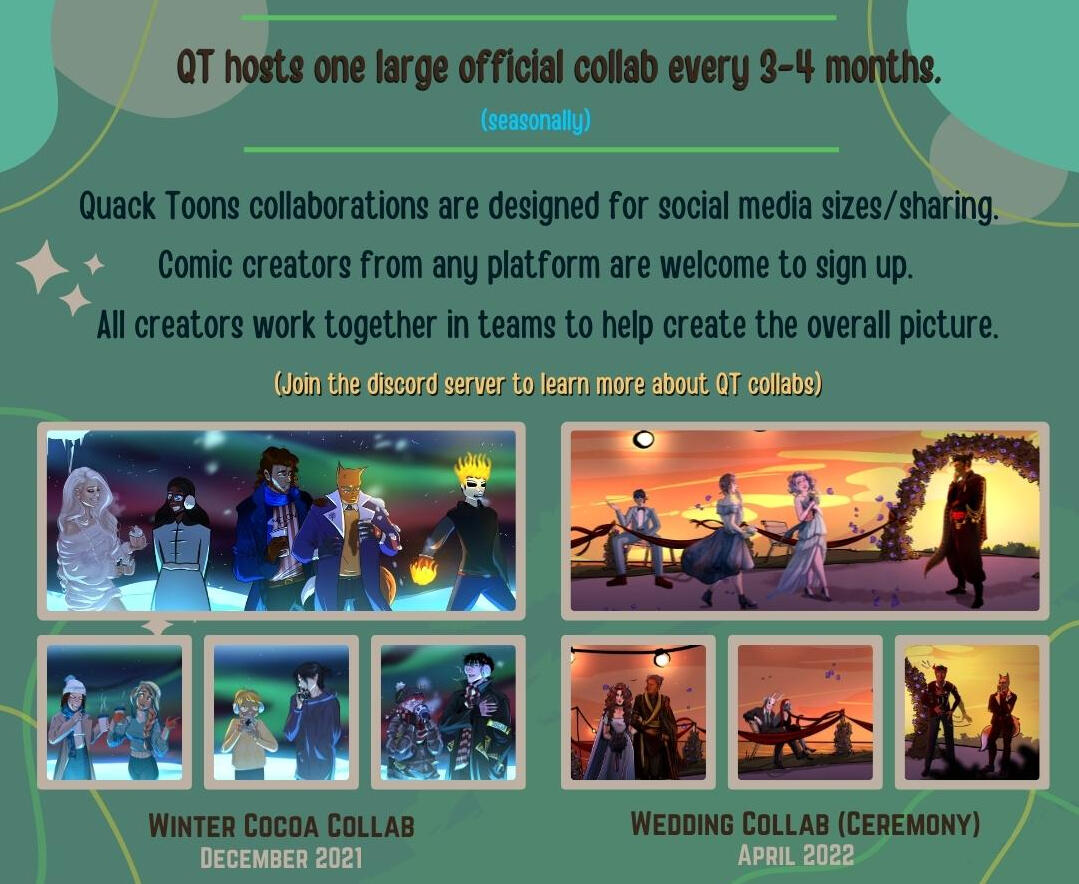Quack Toons official collabs happen approximately every four months. Since the collabs we host are for creators across all platforms they are designed and intended for sharing on social media.